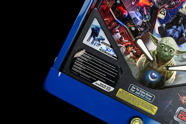 To honor the original release of Star Wars in 1977, the Limited Edition model will be limited to 770 games in the initial launch territories. This highly collectible model includes the Expression Lighting System™ and Speaker Expression Lighting System with Star Wars-themed game effects, a full-color mirrored backglass, full-color high-definition cabinet decals, exclusive custom Star Wars: Fall of the Empire pinball armor, a custom designer-autographed bottom arch, upgraded audio system, anti-reflection pinball playfield glass, shaker motor, a sequentially numbered plaque, a signed Certificate of Authenticity, and a digital Insider Connected LE owner’s badge on registration.