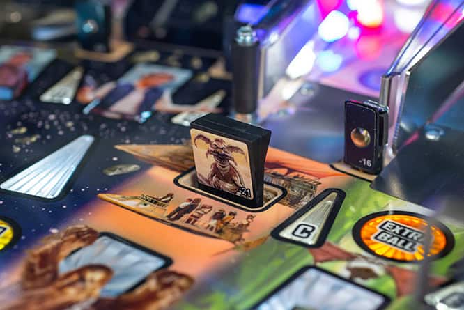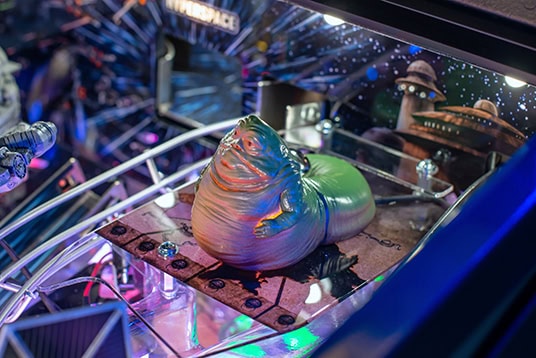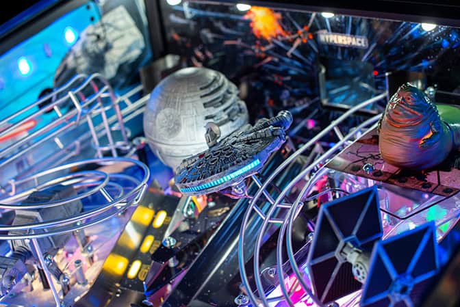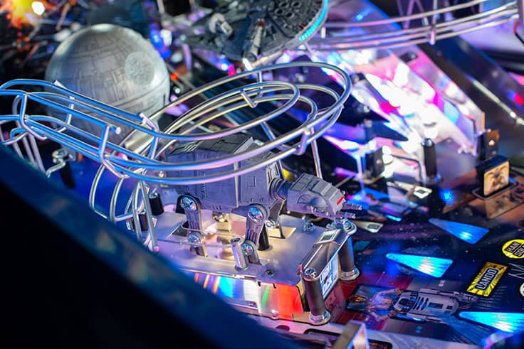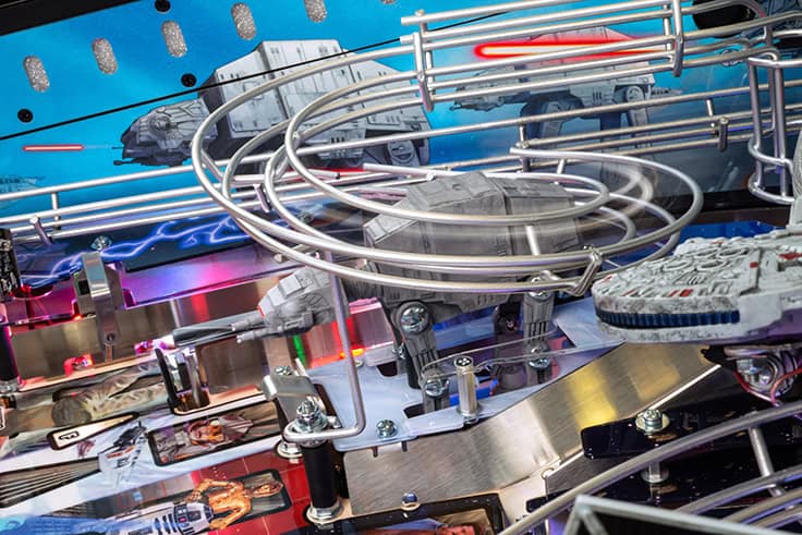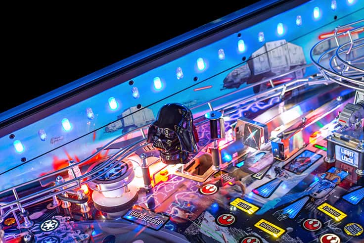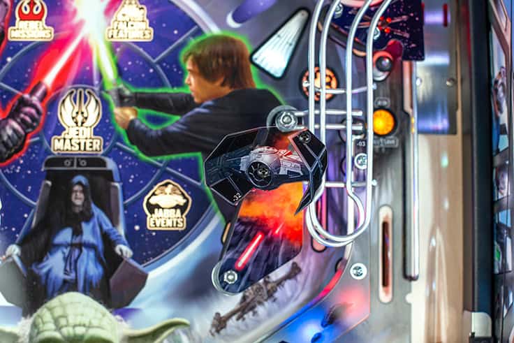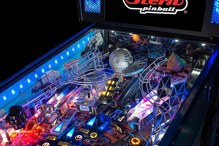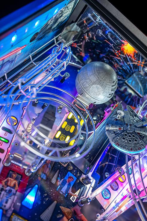 In Stern Pinball’s Star Wars: Fall of the Empire pinball games; players will take part in the adventures that started it all and experience iconic Star Wars-inspired moments through a pinball experience like no other. Players will take down the AT-AT by attaching their snowspeeder’s tow cable and shooting the spiral ramp to send it crashing down, mirroring the breathtaking scene from Star Wars: The Empire Strikes Back. Destroy the Death Star II from Star Wars: Return of the Jedi by lowering shields on the battle station during Death Star Multiball to save the galaxy. Players can also escape from Cloud City when reactivating the Millennium Falcon’s hyperdrive by hitting the center jump ramp to escape to hyperspace. Throughout the pinball experience, players will enter Jabba the Hutt’s Sarlacc Pit, battle stormtroopers, defeat TIE fighters, and even mimic using the Force to save your ball on the journey to defeating the Empire. Feel the power of the dark side as you enjoy special Darth Vader-inspired modes.